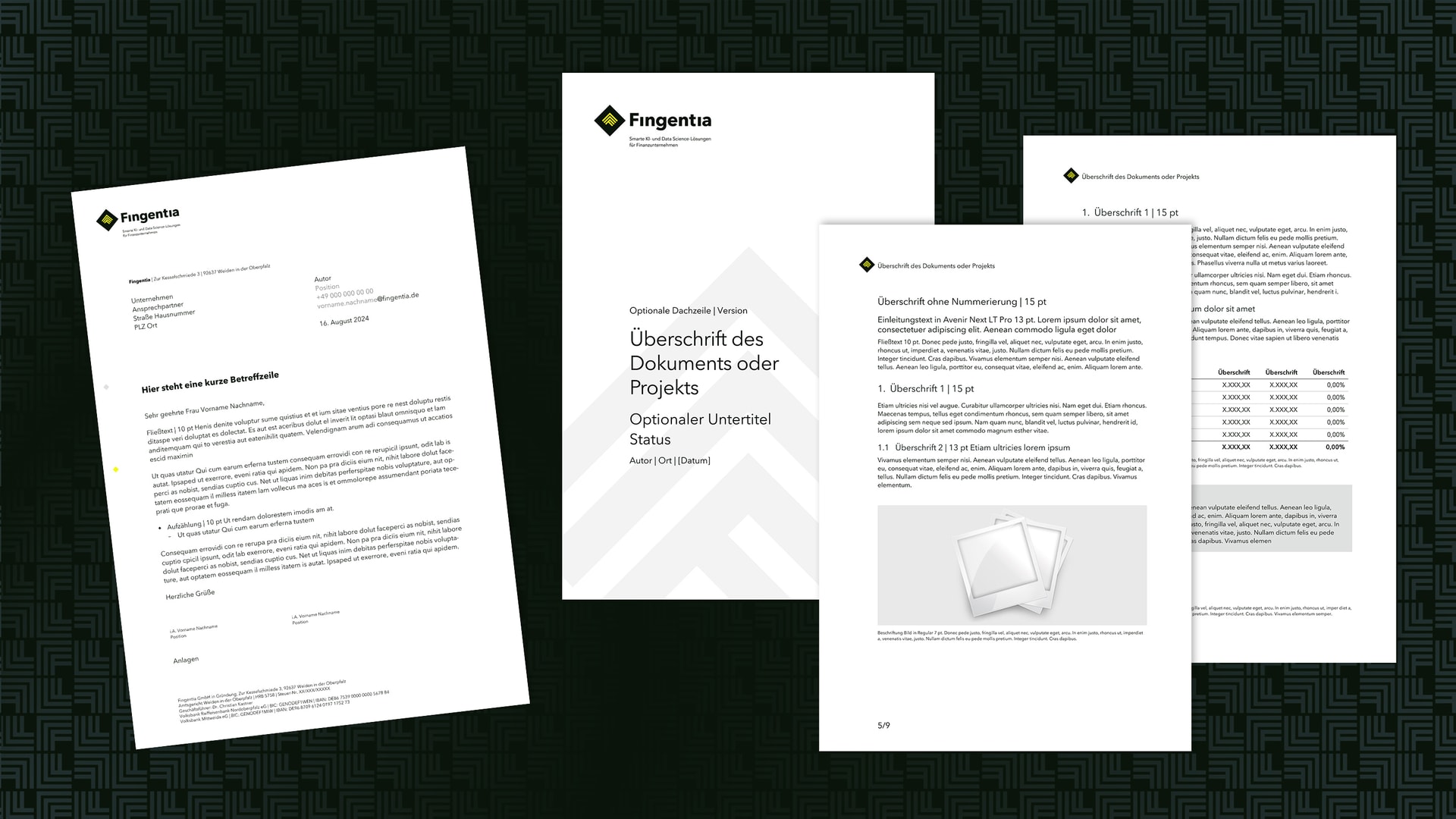 Die PowerPoint-Vorlagen wurden so konzipiert, dass sie für Präsentationen wie für Projektdokumentationen optimal funktionieren. Zudem haben wir verschiedene Wordvorlagen erstellt, um die konsistente und professionelle Kommunikation des Unternehmens zu unterstützen. Basis unserer Templates war die Corporate Identity von Fingentia, die die Markenagentur konkav entwickelt hatte.