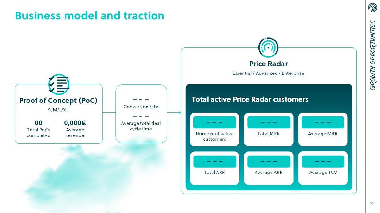 Der Kunde lieferte eine inhaltlich hochwertige Unterlage, die alle wesentlichen Informationen in Textform enthielt und erste Impulse für die grafische Darstellung umfasste. Unsere Aufgabe bestand in der klaren, kreativen Umsetzung der Inhalte, um die Innovation des Price-Radars im Design zu spiegeln. Daher haben wir die Präsentation in engem Austausch mit den Kunden iterativ und dynamisch umgesetzt.