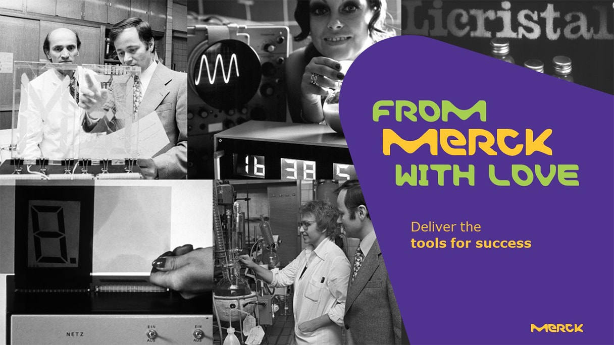 Der Wissenschafts- und Technologiekonzern Merck ist Zulieferer für Display-Hersteller. Auf einer der weltweit größten Messen der Display-Industrie hielt der Display Solutions-Forschungsleiter eine Rede zum 60-jährigen Bestehen der Society for Information Display (SID). Die Herausforderung war, die Geschichte der SID, Mercks Display-Bereich und die Technologieentwicklung kreativ in einer unterhaltsamen PowerPoint-Präsentation zu kombinieren.