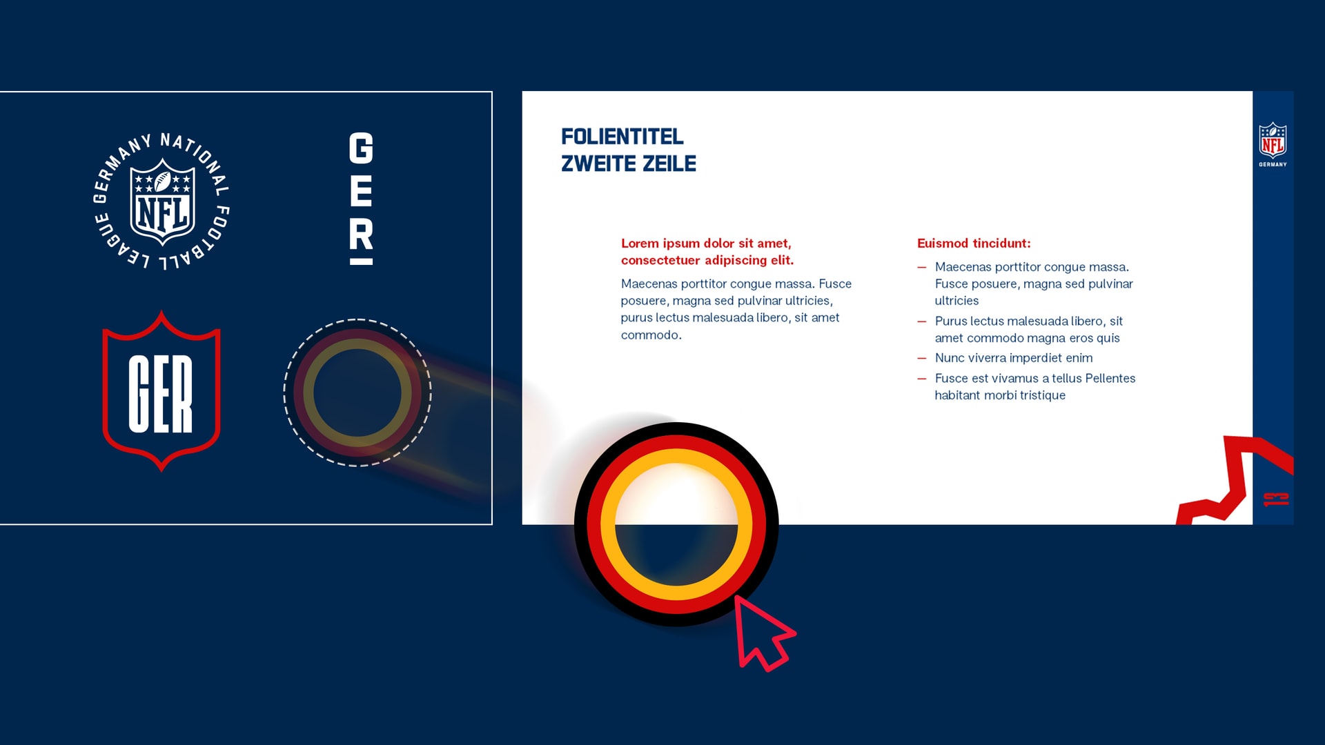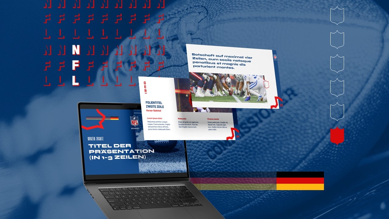 Neu aufgestellt im PowerPoint-Game für die Kommunikations-Offensive: Für die NFL Deutschland haben wir eine benutzerfreundliche und brand-konforme PowerPoint-Vorlage entwickelt. Dafür haben wir die vielfältigen Gestaltungsvarianten im Corporate Design Manual in die speziellen Anforderungen einer PowerPoint-Präsentation übersetzt und vereinfacht für die Nutzerfreundlichkeit. So entstand ein Präsentationsmaster, dessen starker, konsistenter Look sowohl die Tradition als auch die Dynamik der NFL widerspiegelt und zugleich von allen Mitarbeitenden auch ohne Designkenntnisse genutzt werden kann.