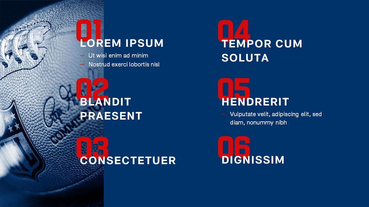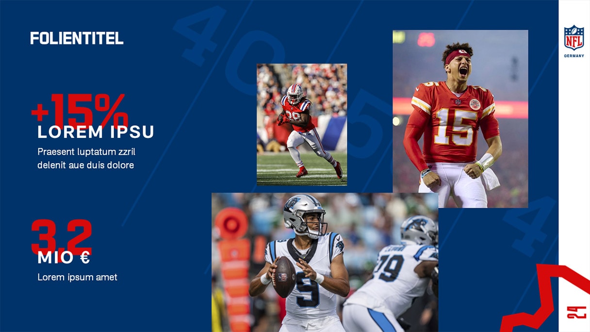 Das PowerPoint-Template der NFL ist das ideale Werkzeug, um das Football-Feeling auf authentische Weise in den deutschen Markt zu tragen und die Marke weiter bekannt zu machen.
