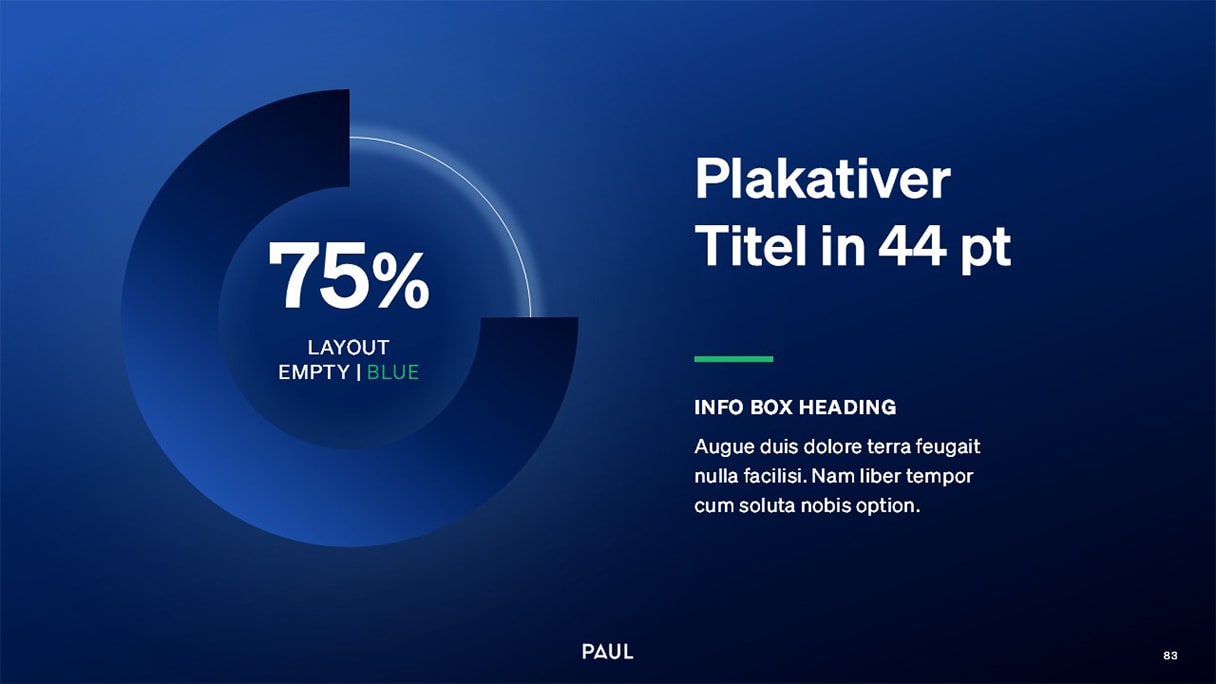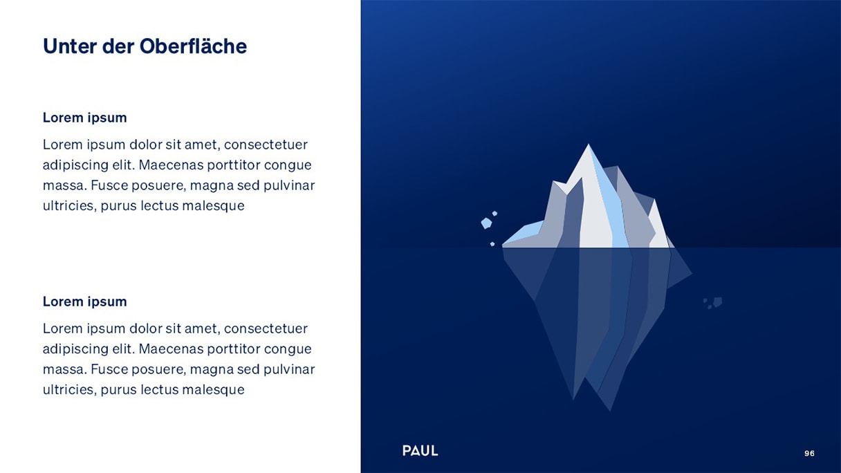 Dafür erarbeiteten wir in einem Workshop mit dem PAUL-Team auf Basis ihres Markenkerns das Ziel der Präsentation: PAUL soll digital, glaubwürdig und empathisch erscheinen. In der Konzeptionsphase traf AI auf AI: Für ihre AI-Lösungen recherchierten und entwickelten wir mit AI eine individuelle Bildsprache sowie ein passendes Wording. Mit auf den Punkt gebrachten Botschaften und zwei zielgruppenorientierten Erzählsträngen formulierten wir eine Storyline für Assetmanager und Wohnbaugenossenschaften. In der Pitch-Präsentation bringen wir hochkomplexe technische Vorgänge in eine einfache, verständliche Visualität und Sprache.