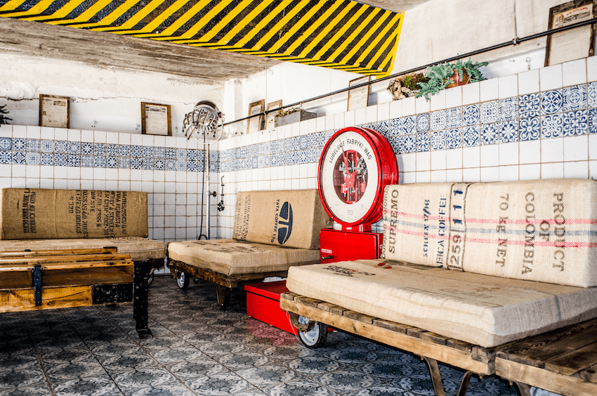 Die Frage ist eher, was ist hier nicht besonders. Keine großen Säle und kein spektakulärer Ausblick, dafür aber jede Menge Industrierelikte und ausgesuchte Einzelstücke, die der rauen und bröckeligen Fabrikhalle ihre einzigartig warme Seele geben: Paletten- und Chesterfield-Möbel, Betonböden und Turnhallenbodenreste, Bakelitschalter und umgewidmete Rohre, Metalle, Hölzer, Leuchten, Waagen… Im Jahr 2017 vom Magazin Architectual Digest zu einer der 20 fulminanten Party Locations weltweit erkoren.