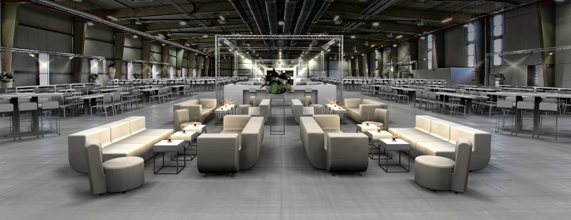 Nach Bühnenshow, Messe oder Kongress in der Halle können Ihre Gäste dann in entspannter und rustikaler Atmosphäre des Eventlofts, einem 850 Quadratmeter großem Gewölbe, den Tag ausklingen lassen. Lounge und Bühnenbereich laden mit 7,50 Meter hohe Decken zum Feiern und Netzwerken ein.