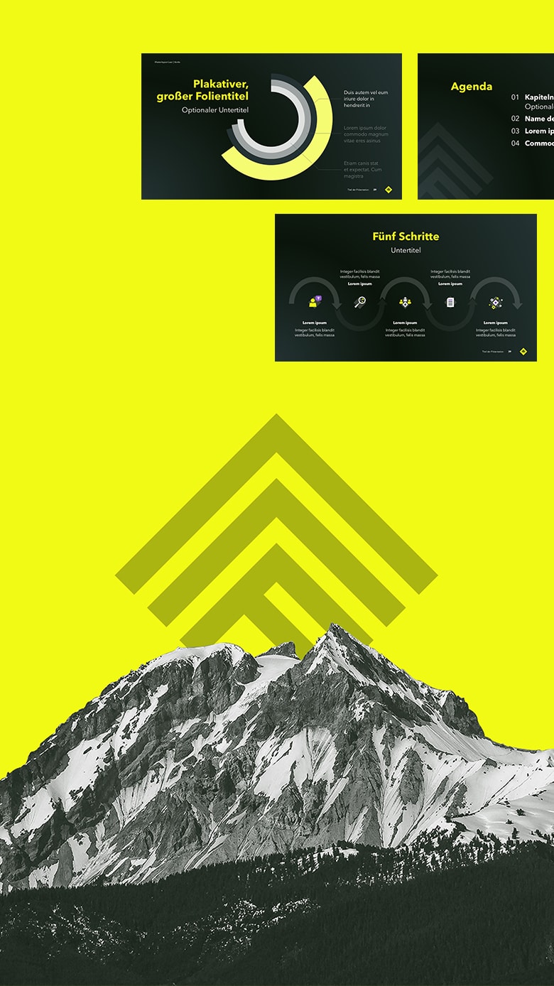 <p>Es ist Zeit, zu glänzen - mit Pitch- und Unternehmenspräsentation, Managementpräsentationen, Masterfolien, Film, Eventdesign und vielem mehr.</p>