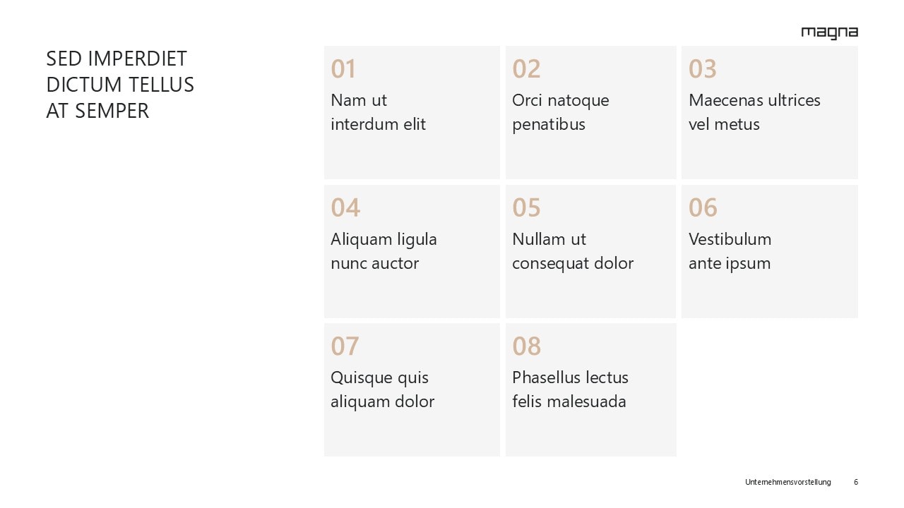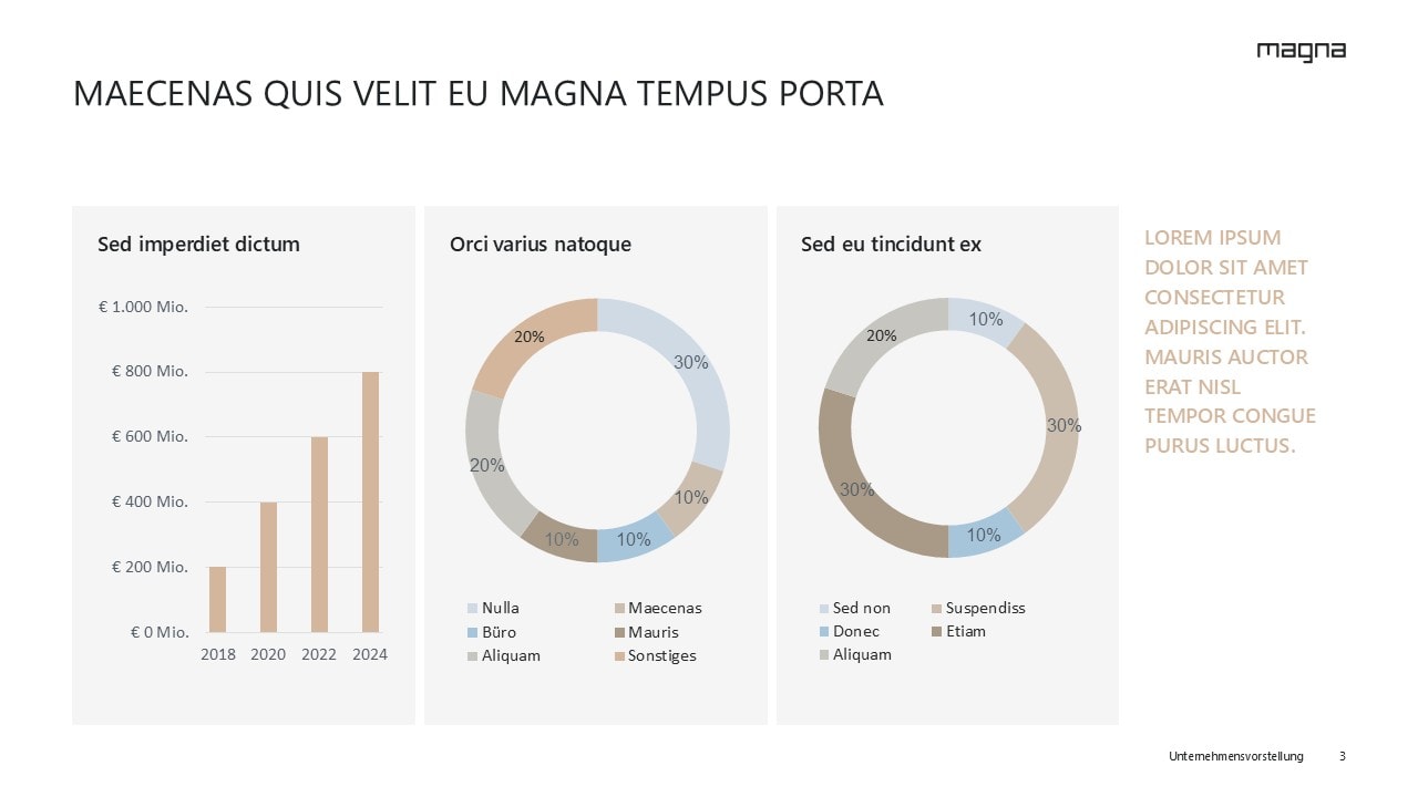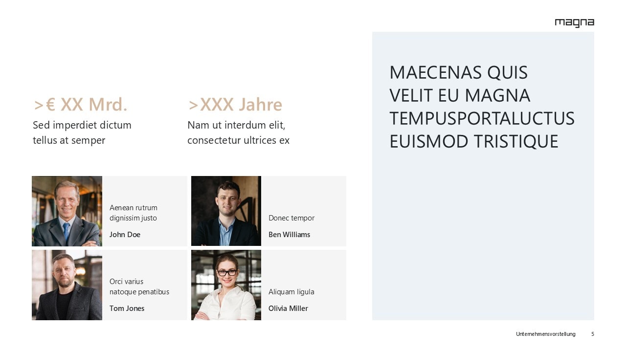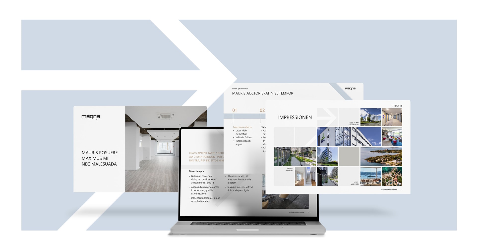 In a four-hour workshop, we worked with magna’s management team to define the key messages and arguments. In parallel, we designed a fresh layout that suits the industry and emphasizes professionalism and Referenz magna asset management Unternehmenspräsentation credibility. The result is a powerful sales-oriented company presentation that convinces in terms of content and stands out visually.